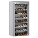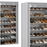 Praktický a stabilný 8-poschodový stojan na topánky s prachuvzdorným krytom pojme až 40 párov obuvi a udrží predsieň či šatník v perfektnom poriadku. Vďaka rolovacím dverám na zips je prístup rýchly a pohodlný, sivé prevedenie sa navyše hodí do každého interiéru.