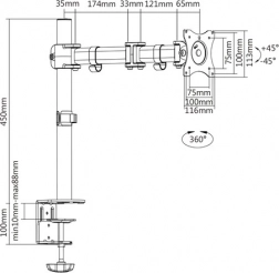 Optimalizujte svoju pracovnú plochu s odolným stolovým držiakom monitora v čiernom práškovom laku. Vďaka otočeniu o 360° (pivot) a náklonu ±45° ľahko dosiahnete ideálny uhol pre prácu, hranie aj sledovanie obsahu. Robustná kovová konštrukcia a svorkové uchytenie k stolu zaisťujú stabilitu a bezpečnosť.