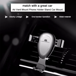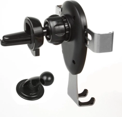 Gravitačný držiak do auta pre mobilné zariadenia, ktorý sa pripevňuje na mriežku alebo čelné sklo. Stačí doň umiestniť telefón alebo smartfón a čeľuste sa automaticky zatvoria. Je vybavený otočnou hlavou, ktorá umožňuje umiestniť telefón v ľubovoľnom uhle. Súčasťou balenia je aj stojan, ktorý umožňuje montáž napríklad na palubnú dosku.