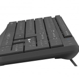 - Efektívna a tichá práca: Ergonomická klávesnica má plochý profil kláves pokrytých odolnou vrstvou proti opotrebeniu a membránový mechanizmus znižujúci hlučnosť úhozov.