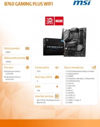 Základná doska MSI B760 Gaming Plus Wifi ponúka celú radu funkcií, ktoré maximalizujú herný výkon a stabilitu systému. Jej robustná konštrukcia zahŕňa 12+1 Duet Rail napájanie, systém posilnenia CPU a pamäte, čo zaručuje najlepšie možné využitie vašich komponentov.