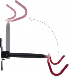 Po zložení bicykla možno držiak jednoducho sklopiť, takže nevyčnieva do priestoru. Dvojité ochranné povrchovanie hákov minimalizuje riziko oderkov laku a zabezpečuje stabilné a šetrné uloženie. Perfektné riešenie pre malé domácnosti, dielne aj garáže.