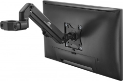 Súčasťou držiaka je plynová pružina, ktorá umožňuje ľahké a plynulé nastavenie výšky monitora. Je kompatibilný so štandardmi VESA 75x75 a 100x100 mm, čo umožňuje bezproblémovú montáž obrazoviek rôznych značiek ako Sony, LG, Samsung, Philips a ďalšie.