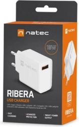 Univerzálna sieťová nabíjačka NATEC Ribera s jedným portom USB‑A a výkonom 18 W podporuje rýchle nabíjanie (QC 3.0, Samsung AFC, Huawei FCP/SCP), inteligentne prispôsobí parametre a chráni vaše zariadenia vďaka OVP/OCP/SCP/OTP ochranám. Kompaktná a ľahká, ideálna domov aj na cesty.