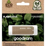GOODRAM UME3 Eco Friendly je moderný USB flash disk navrhnutý a vyrobený v Poľsku, ktorý spája spoľahlivosť a udržateľnosť. Biologicky rozložiteľné telo znižuje ekologickú stopu, zatiaľ čo rozhranie USB 3.2 (spätne kompatibilné s USB 2.0) zabezpečuje svižnú prácu s dátami.