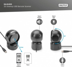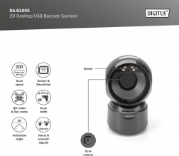 Automatický IR senzor aktivuje skener, len čo je kód v zornom poli, a vizuálna aj zvuková signalizácia potvrdzuje úspešné načítanie. Anti-interference zaisťuje odolnosť voči okolitému svetlu, zatiaľ čo otočná hlava a kompaktné telo šetria miesto na stole.