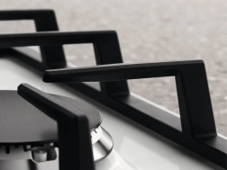 Varná doska je vybavená železnými roštami, ktoré nielenže zaisťujú stabilitu pre ťažké nádoby, ale tiež dodávajú kuchyni profesionálny vzhľad. Elegantný povrch a plochá varná zóna sa ľahko hodí do moderných, minimalistických kuchýň.