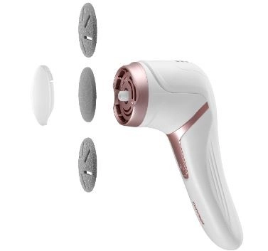Pre dosiahnutie najlepších výsledkov ponorte nohy pred použitím pilníka do teplej vody, aby ste zmäkčili pokožku. Potom ich osušte uterákom. Zvoľte požadovanú rýchlosť a jemne pohybujte rotujúcou hlavicou pozdĺž chodidla. Pri pravidelnom používaní budú vaše päty a chodidlá hladké a jemné na dotyk.