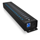 ICY BOX IB-HUB1717 je výkonný 17-portový USB hub navrhnutý pre pracovné stanice, servery, dielne aj štúdiá. Ponúka 16 portov USB 3.2 Gen 1 Type‑A pre dátové prenosy až 5 Gb/s na každom porte a jeden vyhradený port USB‑A na rýchle nabíjanie mobilných zariadení. Robustné celokovové šasi z hliníka zaisťuje spoľahlivosť a účinné odvádzanie tepla aj v náročných podmienkach.