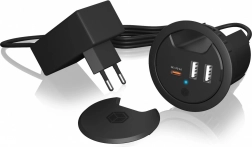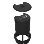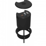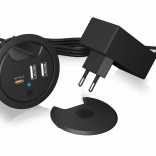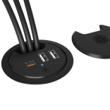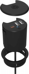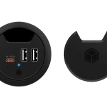 - Priestorovo úsporný dizajn: nabíjací rozbočovač bol špeciálne navrhnutý na inštaláciu do stola. Je mimoriadne plochý a kompaktný, a preto sa dá diskrétne integrovať do povrchu stola. Šetrí tak cenné miesto na stole