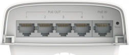 1 gigabitový port PoE++ IN a 4 PoE+ OUT porty: Podporuje až 64 W / 44 W / 19 W / 6 W výkonu PoE, kompatibilný s normami 802.3bt Type 4, Type 3, 802.3at a 802.3af PoE.