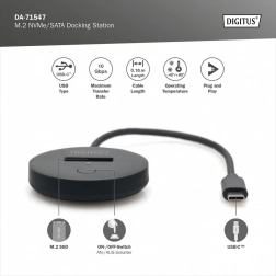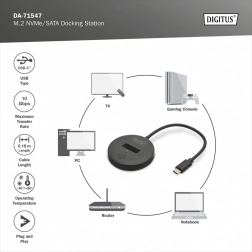 Dokovacia stanica DIGITUS umožňuje spravovať a rozširovať úložisko pomocou SSD M.2 štandardov NVMe (B+M Key / M-Key) aj SATA (B+M Key). Vďaka rozhraniu USB‑C 3.2 Gen2 dosiahnete rýchlosti až 10 Gbps, takže prenos veľkých súborov, zálohovanie aj práca s multimédiami je rýchla a plynulá.