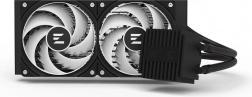 ZALMAN Alpha2 240 mm kombinuje špičkový výkon s atraktívnym dizajnom. Otočná magnetická hlava pumpy o 360° s ARGB efektmi umožňuje jednoduché nasmerovanie loga aj hadíc, zatiaľ čo displej teploty číta hodnoty z BIOSu a poskytuje okamžitý prehľad o stave procesora. Inovovaná prietoková konštrukcia pumpy oddeľuje vstup a výstup chladiacej kvapaliny pre stabilnú prevádzku bez preťaženia a maximálnu efektivitu.
