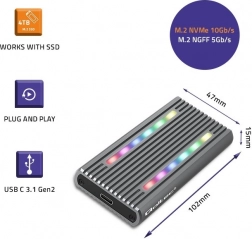 Elegantná a robustná ochrana pre vaše cenné dáta. Púzdro z kvalitného hliníku napomáha odvodu tepla a dizajn s RGB LED umožňuje meniť farby podľa potreby. Kompaktný dizajn umožňuje ľahkú prenosnosť a ochrana pred poškodením je samozrejmosťou.</p></div>