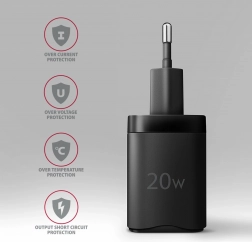 Nabíjajte dva prístroje súčasne. USB‑A s QC 3.0 až 18 W a USB‑C s PD 20 W. Celkový výkon nabíjačky je 20 W s inteligentným rozdelením.