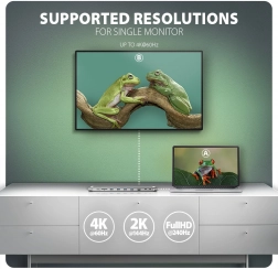 Vďaka rýchlemu rozhraniu USB 3.2 Gen 1 (5 Gb/s) bez problémov obslúži aj dva externé disky súčasne, zvládne nabíjanie telefónu či tabletu až 1,5 A/5 V a podporuje HDR, vysoké obnovovacie frekvencie (až 2K/144 Hz, Full HD/240 Hz) a HDCP 1.4–2.3. Hliníková konštrukcia zaisťuje odolnosť a pasívne chladenie; priložené podložky umožnia použiť hub ako stojan pre lepšie chladenie notebooku.