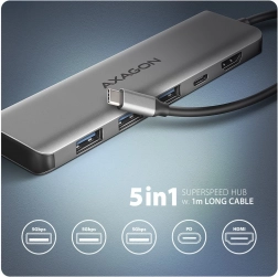 Rozšírte možnosti svojho moderného notebooku jedným káblom. Tento viacportový USB‑C hub ponúkne vysokorýchlostné prenosy cez USB 3.2 Gen 1 (5 Gb/s), plynulé zobrazenie cez HDMI až 4K/30 Hz a súčasné napájanie cez USB‑C PD 100 W. Vďaka 1‑metrovému prívodnému káblu máte voľnosť v umiestnení na pracovnom stole.