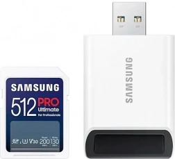 Profesionálna pamäťová karta Samsung PRO Ultimate SD ponúka rýchlosť čítania až 200 MB/s a zápisu až 130 MB/s, ideálna pre UHD 4K video a sériové snímanie. Spoľahlivý výkon, stabilita a odolnosť pre fotografov a tvorcov obsahu, navyše s praktickou čítačkou.