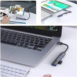 Rozšírte konektivitu svojho zariadenia a pripojte súčasne viac doplnkov – myš, klávesnicu, tlačiareň, flash disk či bezdrôtové dongle. USB‑C hub 4 v 1 ponúka praktické usporiadanie portov, je ľahký a prenosný a bez problémov sa zmestí do vrecka alebo batohu. Robustná hliníková konštrukcia zvyšuje odolnosť a pomáha s odvodom tepla.