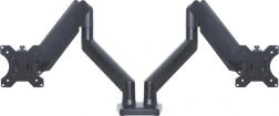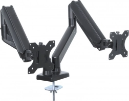 Dvojitý držiak monitora umožňuje ľahké a plynulé nastavenie s pomocou plynovej pružiny, zabezpečujúcej optimálnu ergonómiu a pohodlie pri práci.