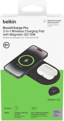 Užite si pohodlné a bezpečné nabíjanie bez káblov. Bezdrôtová podložka Belkin BoostCharge Pro Qi2 dodá vášmu iPhonu výkon 15 W, slúchadlám AirPods 5 W a vďaka USB‑C výstupu 5 W doplní energiu aj ďalšiemu zariadeniu. Magnetická technológia Qi2 zaistí rýchle a presné zarovnanie pre spoľahlivé nabíjanie.