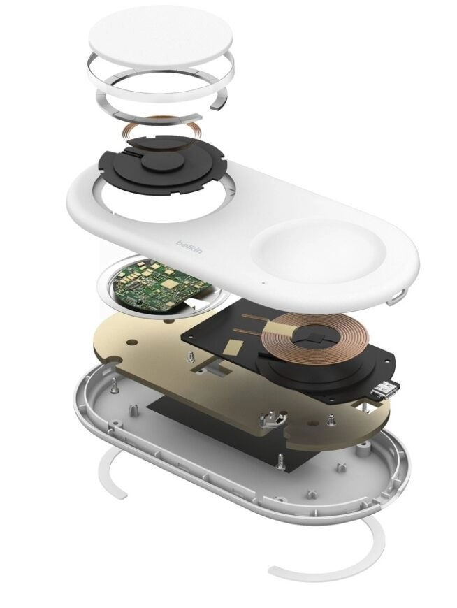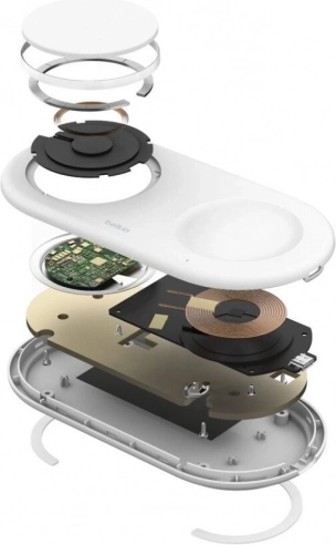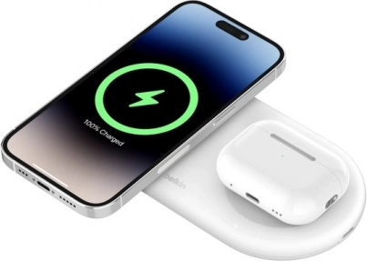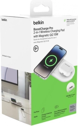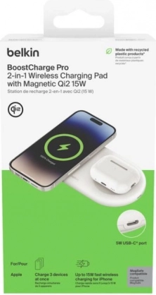 Belkin BoostCharge Pro 2v1 bezdrôtová nabíjacia podložka Qi2 15 W – Biela