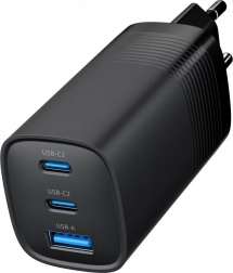 Nabíjačka s tromi portami poskytuje vysoký výkon 65 W, ktorý je dostatočný pre rýchle nabíjanie smartfónov aj notebookov. Využíva technológiu GaN, čo umožňuje vytvoriť kompaktné a prenosné zariadenie, ktoré je zároveň energeticky úsporné.