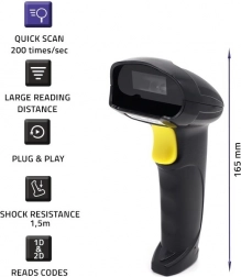 Vďaka rozhraniu Plug&Play funguje ihneď po pripojení cez USB, bez inštalácie softvéru. Rýchlosť až 200 skenov/s, ľahké čítanie pod rôznymi uhlami a odolnosť voči pádom do 1,5 m robia z tejto čítačky spoľahlivého pomocníka pre inventúry, príjem tovaru aj prácu pri pokladni.