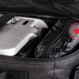 Posuvná a vyberateľná prepážka prispôsobí vnútorný priestor projektoru aj príslušenstvu. Samostatné vrecko na dokumenty udrží všetko na svojom mieste.