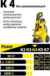 Kärcher K4 Classic Home je vysokotlakový čistič určený pre každodenné použitie. Vďaka svojmu kompaktnému dizajnu s držiakom hadíc a kolieskami je ľahko prenosný a mimoriadne efektívny v čistení rôznych povrchov.