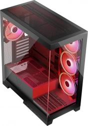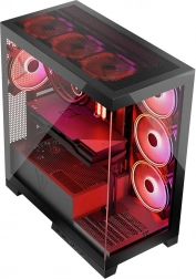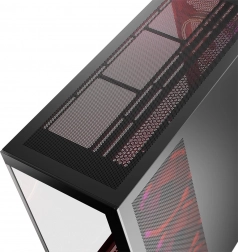 Predný sklenený panel a bočnica zobrazujú nainštalované komponenty tým najlepším možným spôsobom. Svoje komponenty môžete podsvietiť farbou podľa vlastného výberu alebo nastaviť podsvietenie v žiarivých farbách dúhy. Toto je skriňa pre tých, ktorí radi vystavujú vnútro svojho počítača.