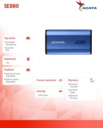 ADATA SE880 je ultra kompaktný externý SSD navrhnutý pre maximálnu mobilitu a výkon. Vďaka rozhraniu USB 3.2 Gen 2x2 (20 Gb/s) dosahuje rýchlosti čítania aj zápisu až 2000 MB/s, takže môžete pohodlne pracovať priamo z disku – od strihu videa po správu veľkých knižníc súborov.