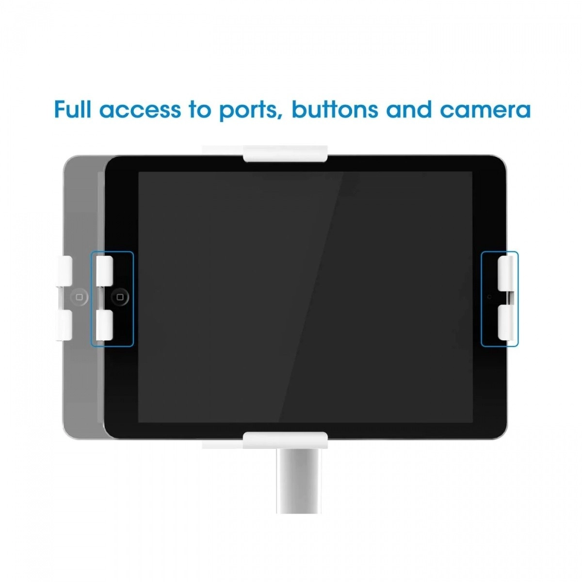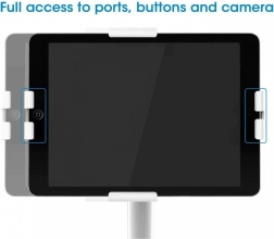 Nastaviteľné úchytné svorky sa prispôsobia tabletom ľubovoľnej značky s uhlopriečkou 7,9 až 11 palcov a zaistia prístup k portom, tlačidlám a predným/zadným kamerám. Mäkká zadná strana a priložené penové podložky zabraňujú poškrabaniu zariadenia.
