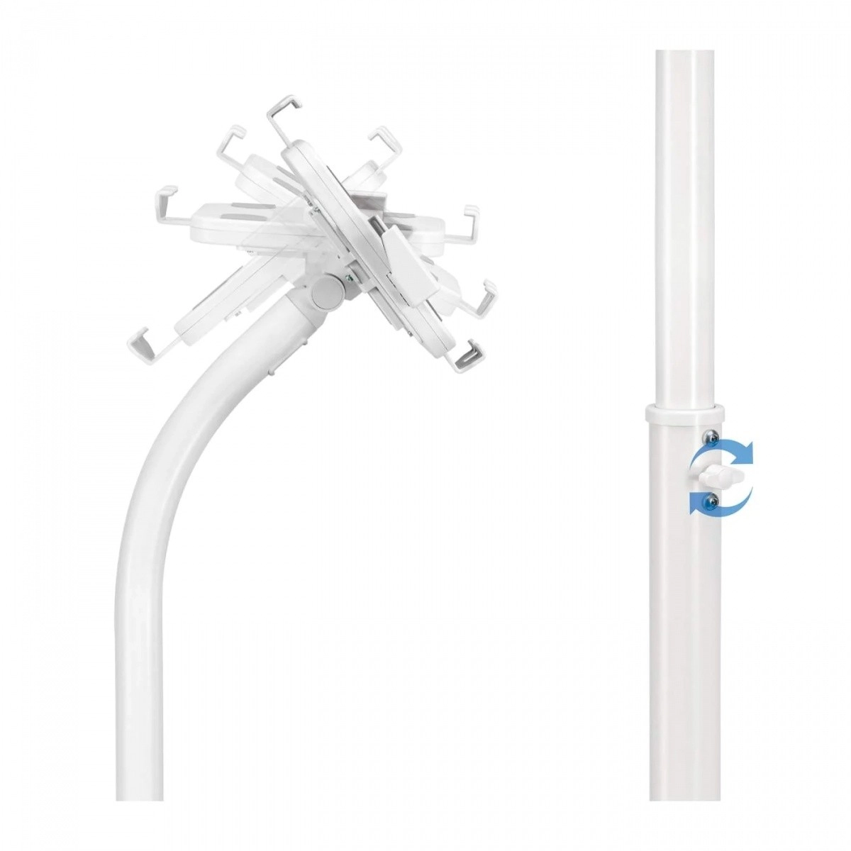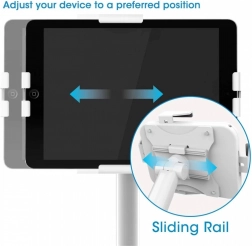 Voľne stojaci podlahový stojan s nastaviteľnou výškou pre tablety od 7,9" do 11", otočenie o 360°, náklon +20° až -110°, biely