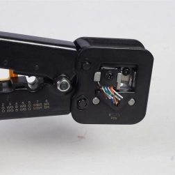 Tento krimpovací nástroj je navrhnutý pre profesionálne použitie i pre domácich kutilov. Umožňuje krimpovanie, strihanie a odizolovanie káblov v jednom pohybe. Vďaka pohodlnému ergonomickému úchytu je používanie nástroja jednoduché a efektívne. Je kompatibilný s väčšinou modulárnych priechodných konektorov a vhodný pre štandardné modulárne konektory 8P8C, 6P6C a 6P4C.