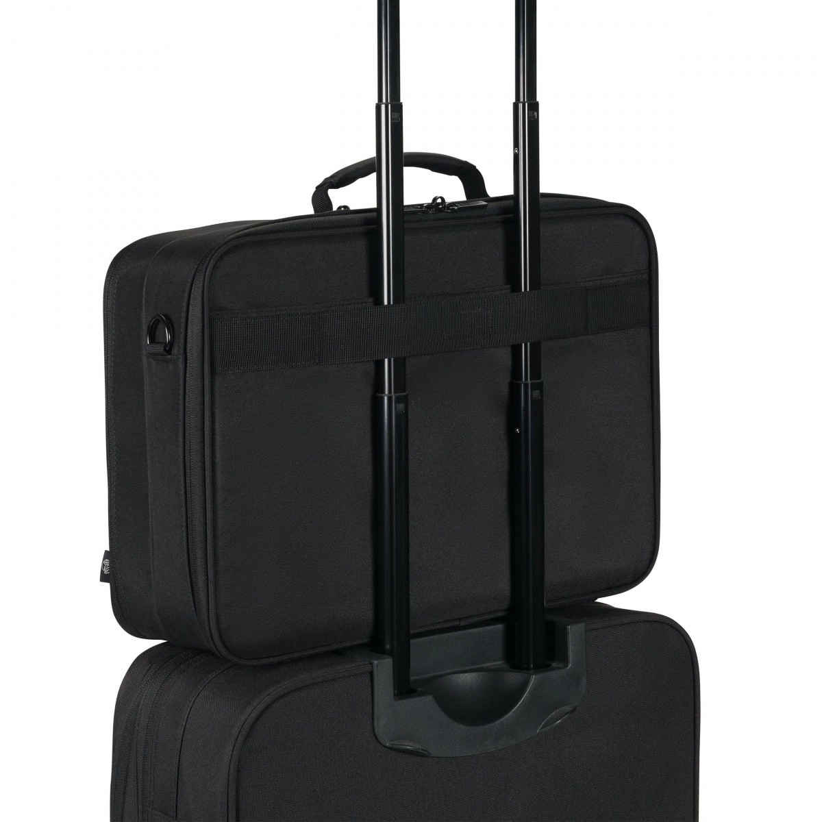 Táto dobre navrhnutá taška obsahuje polstrovanú priehradku na tlačiareň a projektor a tiež uzamykateľnú a polstrovanú priehradku na notebook so zosilneným rámom pre maximálnu ochranu. Predné vrecko bolo špeciálne navrhnuté pre mobilné príslušenstvo a vrecko na zips ponúka priestor pre napájací adaptér a kábel. Skrytá priehradka pre GPS lokátor umožňuje mať tašku neustále pod dohľadom a vrecko na zips so zámkom RFID chráni osobné údaje pred neoprávneným prístupom. Dôležité dokumenty možno bezpečne uložiť do zadného vrecka na dokumenty a polstrovaný ramenný popruh zaisťuje pohodlné nosenie. Popruh na kolieskový kufor uľahčuje pripevnenie tašky ku kufru. Taška je doplnená nepremokavým materiálom, ktorý spoľahlivo chráni obsah pred poveternostnými vplyvmi.
