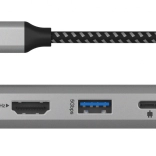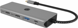 Táto viacportová dokovacia stanica premení jeden port USB‑C vášho zariadenia na univerzálne centrum pripojenia. Podporuje súčasné pripojenie dvoch monitorov cez HDMI s rozlíšením až 4K a plynulou obnovovacou frekvenciou, vysokorýchlostné USB 3.0 pre periférie aj externé disky a Gigabit LAN pre stabilnú sieť. Vďaka priechodnému Power Delivery 100 W zvládne napájať notebook aj ďalšie zariadenia.