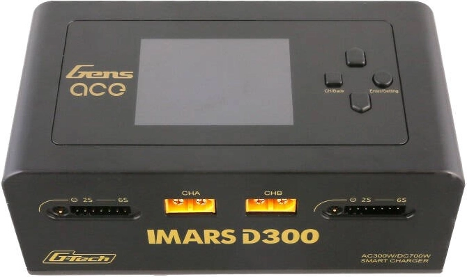 Gens Ace IMARS D300 G‑Tech je inteligentná AC/DC nabíjačka navrhnutá pre batérie G‑Tech Eco aj bežné akupaky. Automaticky rozpozná typ batérie G‑Tech, napätie aj odporúčaný nabíjací prúd, takže nabíjanie je rýchle, presné a bezpečné. Dva nezávislé kanály umožnia nabíjať dve batérie súčasne, a to až do výkonu AC 300 W alebo DC 2×350 W.