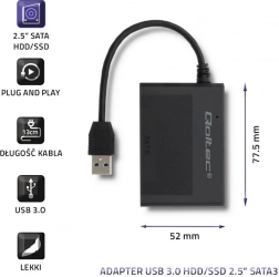 Adaptér USB 3.0 od značky Qoltec je vyrobený s dôrazom na kvalitu a funkčnosť. Zariadenie je vybavené portom SATA 3.0 umiestneným v ochrannom boxe, ktorý stabilizuje pripojený disk a chráni ho pred vonkajšími vplyvmi.