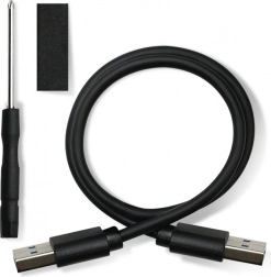 Jednoduchá montáž bez špeciálnych nástrojov. Stačí vložiť disk do puzdra, pripojiť cez USB a zariadenie je okamžite pripravené na použitie. Súčasťou balenia je USB kábel.