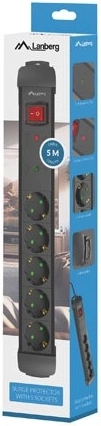 Prepäťová lišta Lanberg poskytuje vysokú úroveň ochrany proti prepätiu vďaka trom varistorom s celkovou absorpciou energie 555 J.