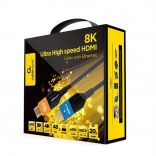 Podpora HDMI 2.1 (Ultra High Speed) znamená až 8K pri 60 Hz a spätnú kompatibilitu s 4K UHD pri 60 Hz. Okrem toho získate eARC na bezstratový prenos viackanálového zvuku, Ethernet na sieťovú komunikáciu cez HDMI a istotu vďaka podpore HDCP. Kovové konektory zvyšujú odolnosť a stabilitu spojenia – bez nutnosti externého napájania.