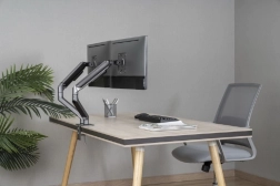 Urobte si miesto na stole a doprajte si ergonomické nastavenie dvoch obrazoviek. Tento sivý dvojitý ramenový držiak umožní ľahko nastaviť výšku, hĺbku aj uhol tak, aby oči, chrbát aj zápästia zostali v pohodlí po celý deň. Vďaka plynulému chodu plynových pružín presne vyvážite hmotnosť monitorov a polohu upravíte jediným dotykom.