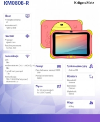 Tablet Kruger&Matz FUN poskytuje kombináciu bezpečnosti a zábavy pre malých užívateľov. Robustná konštrukcia s gumenými rohmi zaisťuje odolnosť voči nárazom a pádom, čo je kľúčové pre zariadenie určené deťom. Vďaka štvorjadrovému procesoru a operačnému systému Android 13 ponúka hladký chod všetkých aplikácií a možnosť sťahovania širokej škály detských hier a vzdelávacích aplikácií.