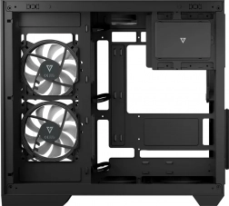 O prúdenie vzduchu sa stará 7× ARGB ventilátor vrátane kontroléra s kapacitou až pre deväť jednotiek. Skriňa je pripravená aj na náročné vodné okruhy – radiátory do 360 mm hore aj dole. Nechýba podpora vysokých vzduchových chladičov CPU (až 175 mm) a dlhých GPU (až 400 mm). Prachové filtre a premyslené priedušné zóny udržia komponenty v ideálnych podmienkach aj pri dlhých herných maratónoch.