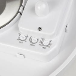 Moderné stropné svietidlo s mikrovlnným snímačom pohybu na automatické rozsvietenie pri detekcii osoby. Vďaka snímaču súmraku svieti len vtedy, keď je to potrebné, čo prináša úsporu energie a dlhšiu životnosť žiaroviek. Nastavenia TIME, LUX a SENS umožňujú prispôsobiť čas svietenia, citlivosť na okolité svetlo aj dosah detekcie pre malé aj veľké miestnosti.