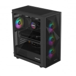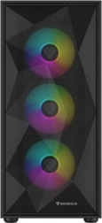 Štýlová a odolná PC skriňa pre náročné zostavy: GENESIS Diaxid 605 ARGB ponúka výborné chladenie, až 4 predinštalované ARGB ventilátory, podporu AIO až 420 mm, USB‑C na hornom paneli a kompletnú ochranu proti prachu s magnetickými filtrami a jemným mesh čelom.