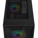Tri predné intake a jeden zadný exhaust zabezpečujú pozitívny tlak a skvelé teploty aj v záťaži. ARGB podsvietenie možno synchronizovať cez základnú dosku.