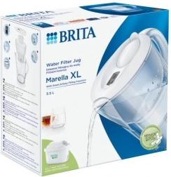 BRITA Marella XL je navrhnutá pre každodenný komfort. Veľký objem 3,5 l (2,0 l prefiltrovanej vody) pokryje potreby celej rodiny, veko s výklopnou klapkou umožní plnenie jednou rukou a štíhle telo sa zmestí do dverí chladničky. Elektronický indikátor BRITA Memo pripomenie výmenu filtra po 4 týždňoch, takže máte istotu optimálnej účinnosti.