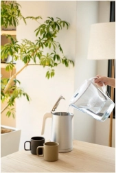 Celkový objem 3,5 l (cca 2,4 l celková kapacita kanvice a 1,4 l filtrované vody v jednej náplni) pokryje celodenný pitný režim aj prípravu nápojov a jedál.